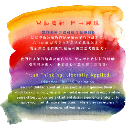 好棒的老師和學校,那些畫和作品都充滿童趣和創意。非常喜歡這裏,感覺這裏才象個做藝術的地方。安靜的畫畫,每個孩子都畫自己獨一無二的畫。 學校鼓勵孩子自由的創作,用多點時間在一張畫上。寧可精些,不看量大。畫 100 張平庸之作,不如用心用時間好好畫好一張。在不斷的修改中,孩子也學會了什麼都要精益求精的品德。~Amy Tu,